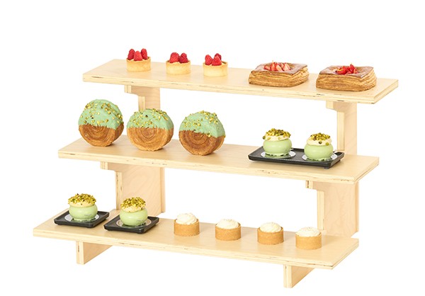This straight 3-tier shelf unit serves as the foundation of the Logan birch wood modular system. Designed to connect with additional straight or corner pieces, it allows you to build expansive, displays tailored to your space and service needs.