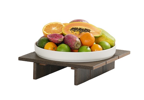 This low-profile square Vista riser adds subtle height to food and beverage displays while maintaining a clean, modern walnut look. Made from durable HDPE for indoor or outdoor use.