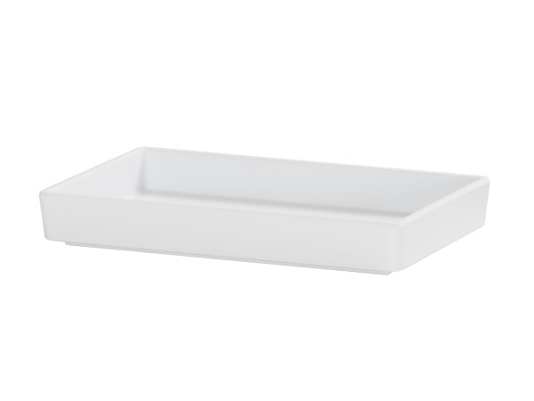 These Hudson Trays offer a matte finish and raised rim, and are modular to fit our 6x10 riser bases. A sleek, versatile solution for building modern buffet displays.