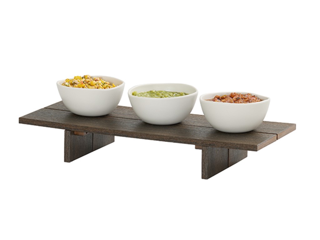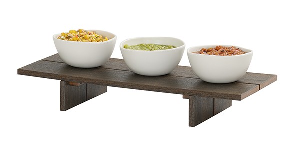 This low-profile rectangle Vista riser adds subtle height to food and beverage displays while maintaining a clean, modern walnut look. Made from durable HDPE for indoor or outdoor use.