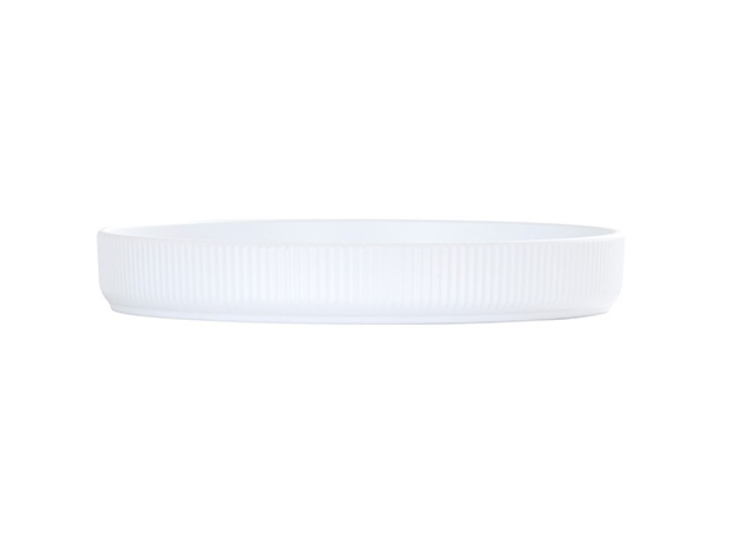 Designed to frame entrées beautifully, the Arista 10" White Raised Rim Plate pairs a premium matte finish with ribbed detailing and soft curves for elevated service.