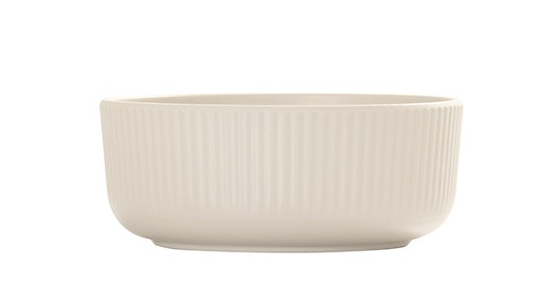 The Arista 30 oz Ivory Bowl offers generous capacity with a premium matte finish, ribbed detailing, and curved edges - ideal for grain bowls and entrée portions.