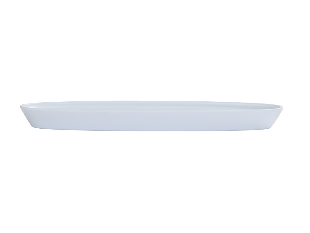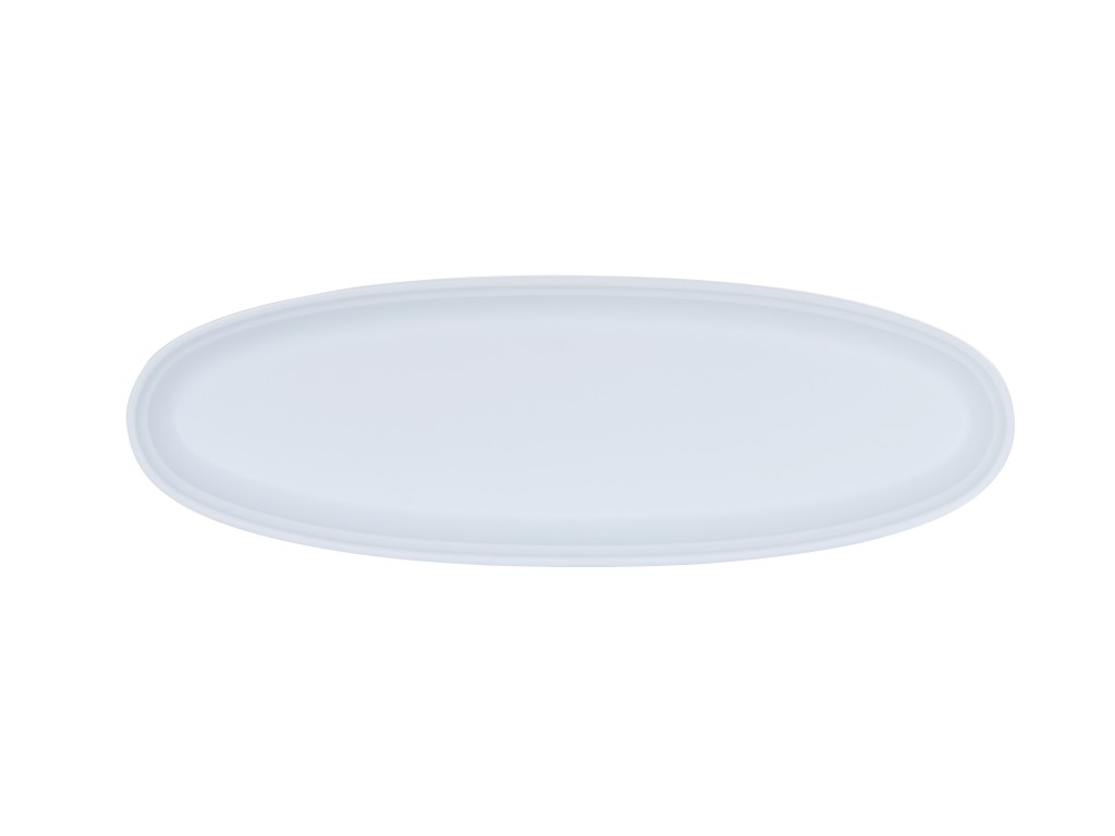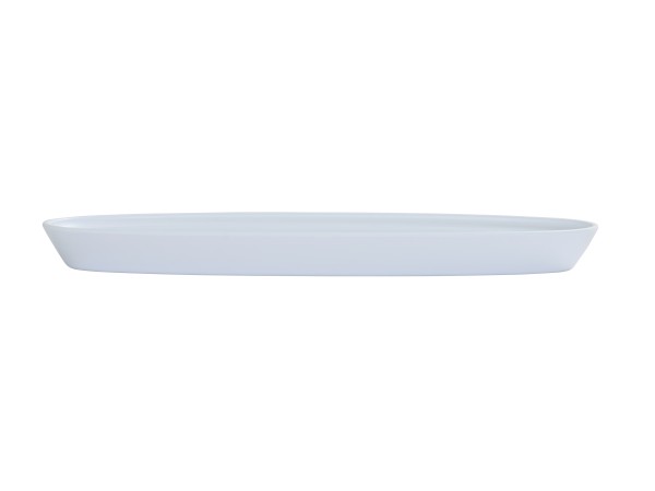 This 6x18 White Cove oval platter features a sleek matte finish and subtle ridge detailing, ideal for linear presentations and modern buffet layouts.