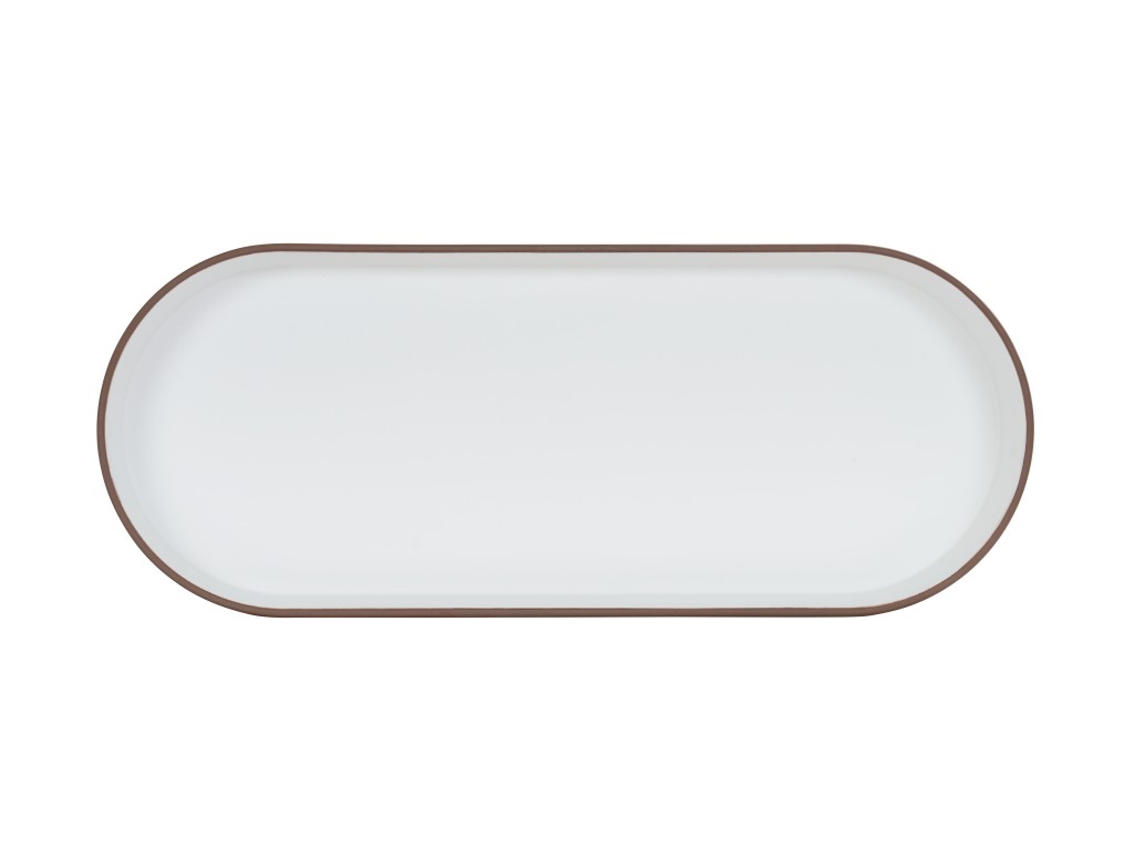 Perfect for family-style service, the Hudson 5 Qt Oval Bowl features a stoneware-inspired ivory interior framed by a brown exterior. Its generous capacity and melamine durability make it ideal for salads, sides, and buffet presentations.