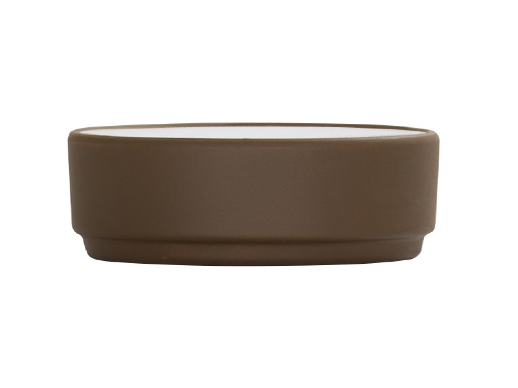 This Hudson 2 oz. Ramekin showcases a two-tone ivory and brown stoneware aesthetic in a durable melamine construction. Ideal for sauces, dips, and condiments, it adds a refined, handcrafted touch to any tabletop.