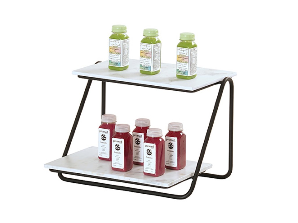 This Slanted Logan 2-Tier Merchandisers bring modern round-wire style to your setup. Mix and match with birch wood or melamine flats to build your perfect tiered display - simple, stylish, and ready for endless possibilities!