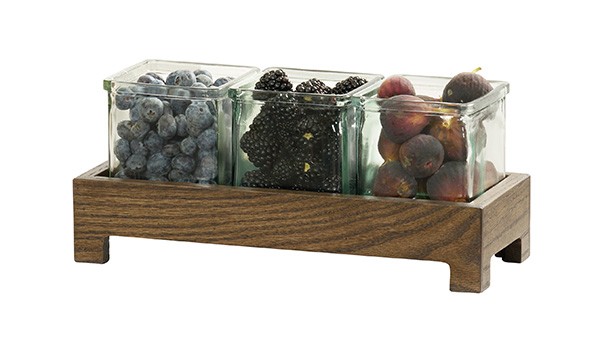Elevate your display with the Melrose Collection 3-Jar Holder, featuring chocolate oak-stained wood and a softly curved silhouette. Designed with 3 included glass jars, this refined piece brings warmth, dimension, and modern elegance to any display.