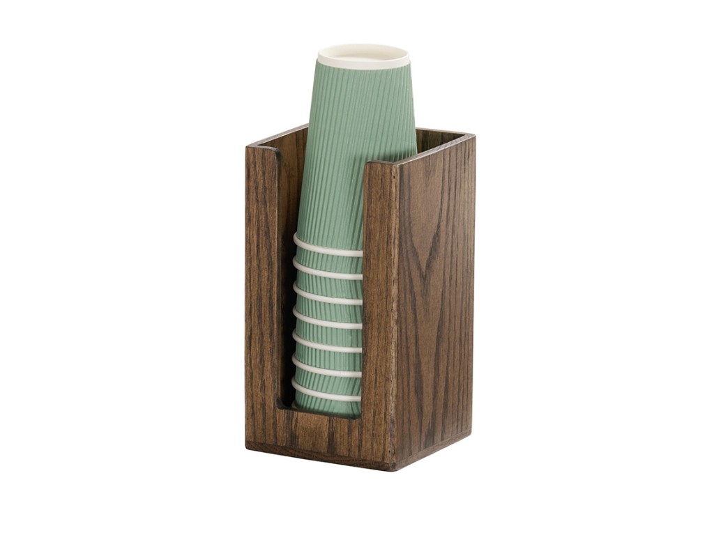Stay organized with the Melrose Collection single-format cup and lid organizer. Crafted from rich chocolate oak-stained wood, this square design holds 4" diameter lids and keeps beverage service polished and within reach.