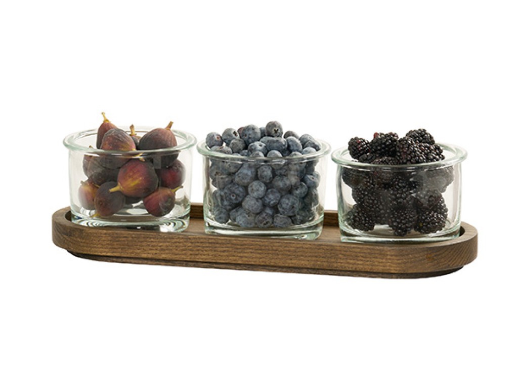 The Melrose Collection Round Glass Jar Display features a refined oval design with a space-efficient footprint. Crafted from rich chocolate oak-stained wood, it offers a sophisticated solution for elevated, modern displays.