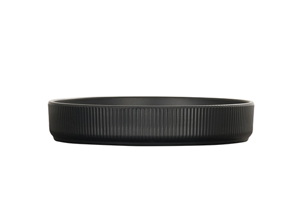 The Arista 6" Raised Rim Plate features a sculpted raised edge, ribbed matte finish, and curved silhouette -perfect for desserts, sides, or small composed plates.