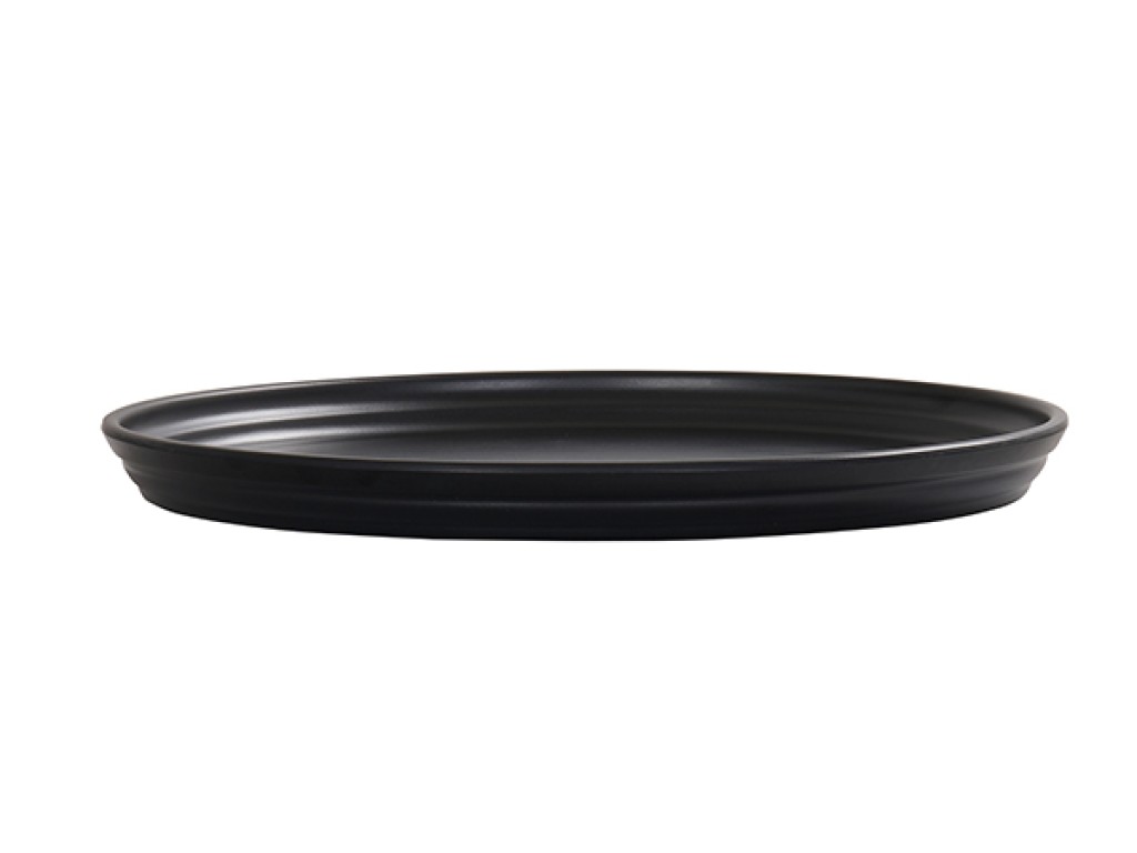 Designed with a matte finish and refined ridge detailing on the rim, this 10" Black Cove plate brings a clean, contemporary look to entrée presentations.