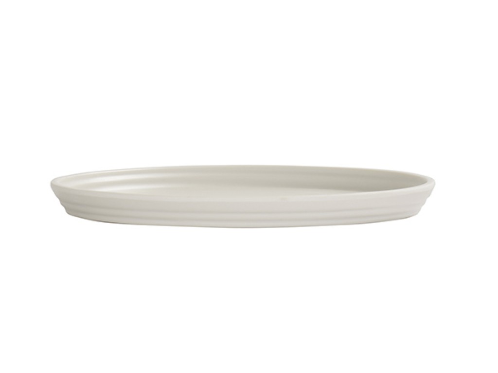 This 8" Cove Ivory plate features a premium matte finish and a sleek ridged rim, offering a modern canvas for appetizers, desserts, or small bites.