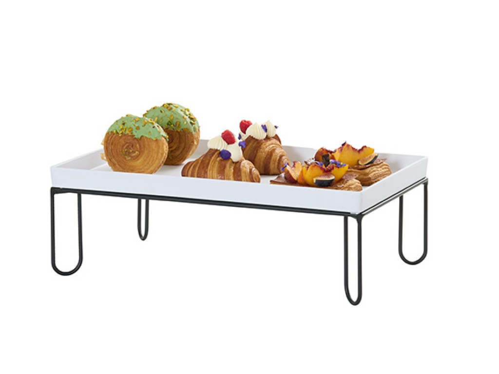 The Logan Black Round Wire Riser Frame features a modern, minimalist design that pairs seamlessly with any Cal-Mil 12x20 modular tray in wood or melamine. Customize your presentation with endless mix-and-match possibilities.