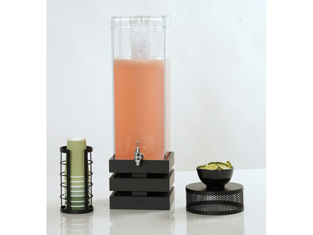 Creating a new twist on the classic bamboo beverage dispenser, the midnight bamboo crate adds a level of rusticity to any food presentation. The classic look of this dispenser is available with both an ice chamber or infusion chamber to create delicious and unique beverages.