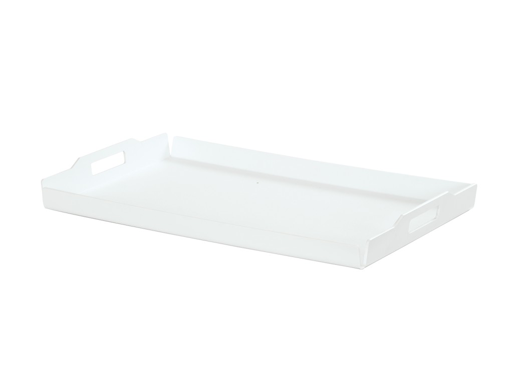 The 24x15.5 White Roomservice Tray is made from durable white plastic and features convenient cutout handles for easy transport. Perfect for hotel or restaurant room service, it combines practicality with a sleek, classic design.